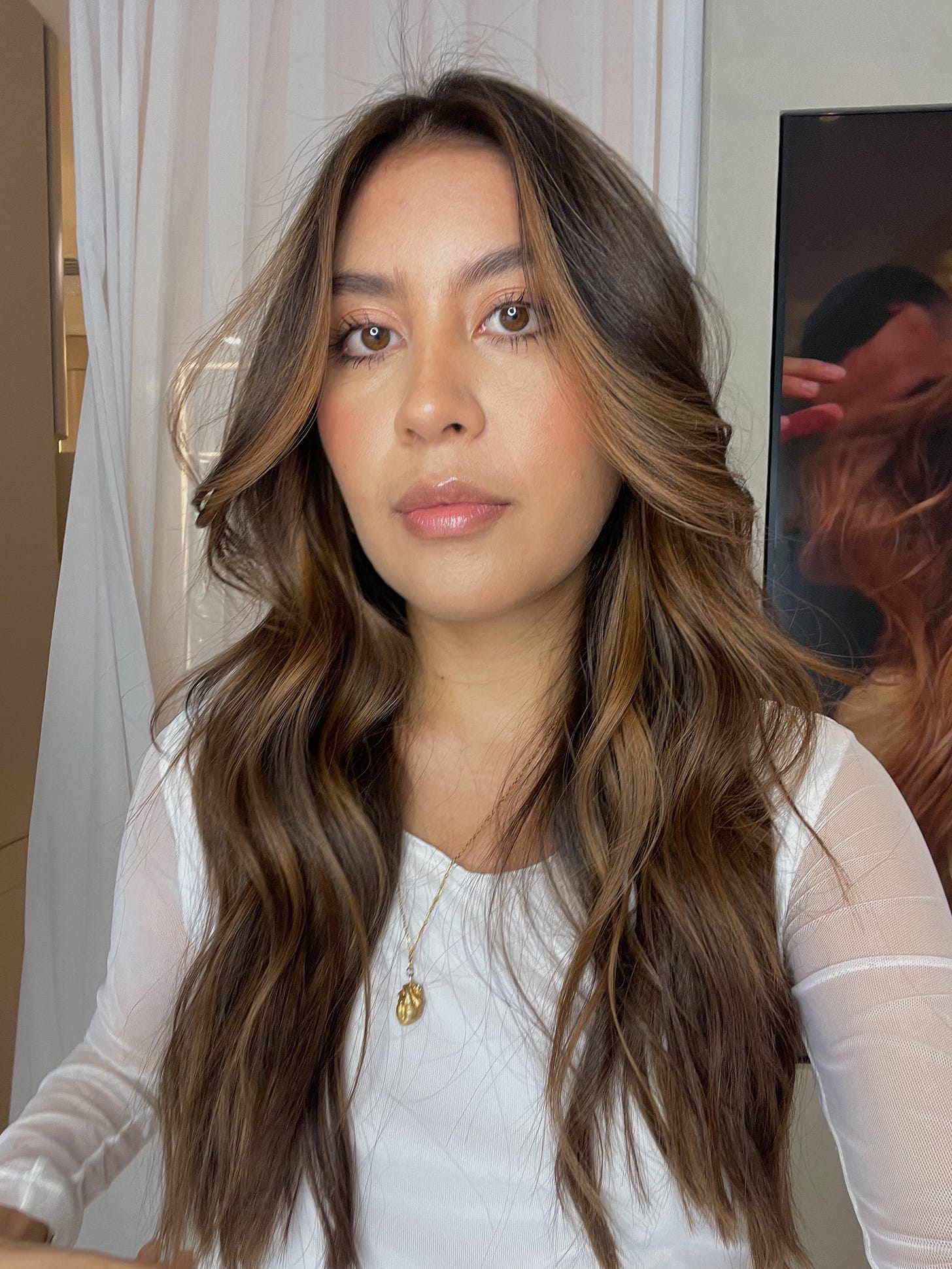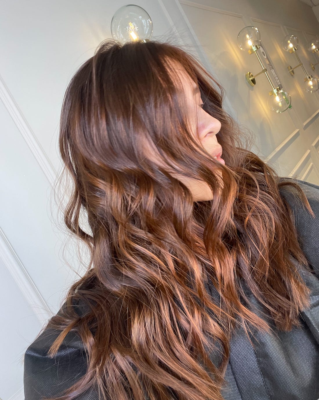 Esta vez mi nueva identidad me pedía transmitir, calma, calidez, seguridad, volver a lo importante, un color que me recuerde a diario “la respuesta siempre esta en ti” y eso busque irradiar con un tono chocolate, muy parecido a mi base pero con un contorno cobrizo que refuerza el brillo de la esencia y la naturalidad.